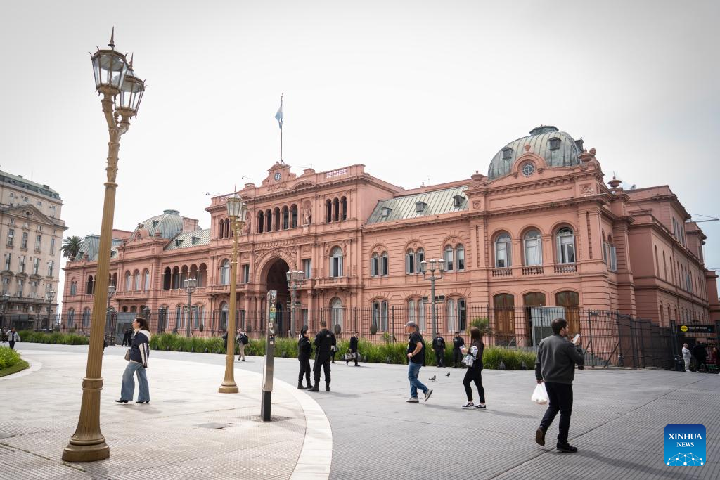 - BUENOS AIRES, 8 septiembre, 2025 (Xinhua) -- Personas caminan frente a la Casa Rosada, sede del gobierno argentino, en la ciudad de Buenos Aires, capital de Argentina, el 8 de septiembre de 2025. Los valores del peso argentino, junto a las acciones y los títulos públicos del país, reportaron el lunes fuertes caídas, tras el revés electoral que tuvo el partido gobernante en las elecciones legislativas realizadas el domingo en la provincia de Buenos Aires. (Xinhua/Martín Zabala)