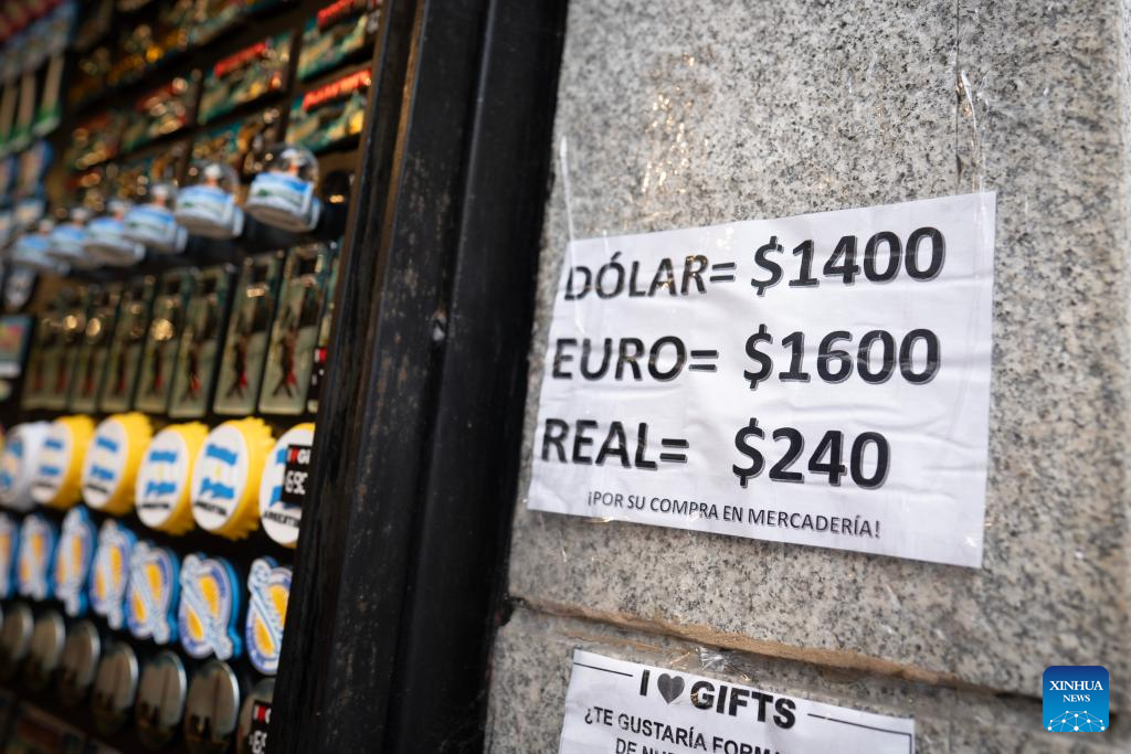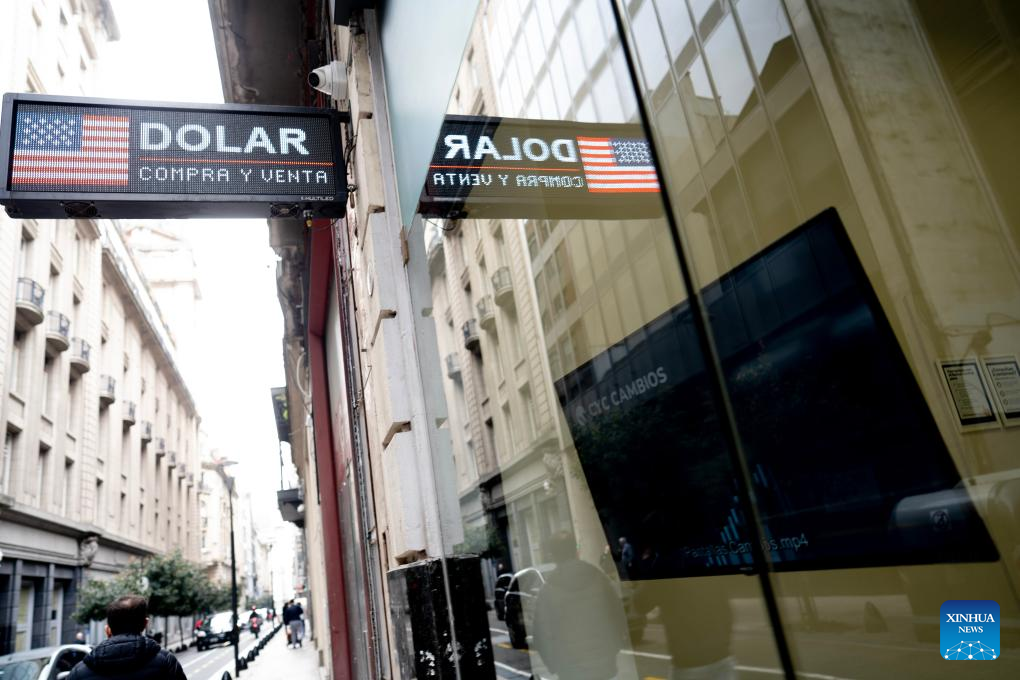 BUENOS AIRES, 8 septiembre, 2025 (Xinhua) -- Un letrero indica la cotización del dólar paralelo en un comercio, en la ciudad de Buenos Aires, capital de Argentina, el 8 de septiembre de 2025. Los valores del peso argentino, junto a las acciones y los títulos públicos del país, reportaron el lunes fuertes caídas, tras el revés electoral que tuvo el partido gobernante en las elecciones legislativas realizadas el domingo en la provincia de Buenos Aires. (Xinhua/Martín Zabala)