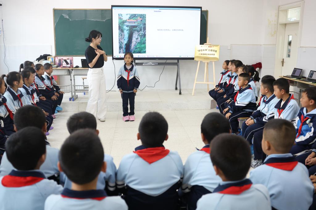ZHANGXIAN, 10 septiembre, 2025 (Xinhua) -- Niños interactúan con una voluntaria de la empresa tecnológica multinacional china Lenovo durante una conferencia sobre Inteligencia Artificial (IA) en la escuela Yanchuan, en el distrito de Zhangxian, en la ciudad de Dingxi de la provincia de Gansu, en el noroeste de China, el 10 de septiembre de 2025. Con computadoras donadas por Lenovo y voluntarios de la empresa, se construyó un aula de informática en la escuela Yanchuan del distrito de Zhangxian. (Xinhua/Chen Bin)