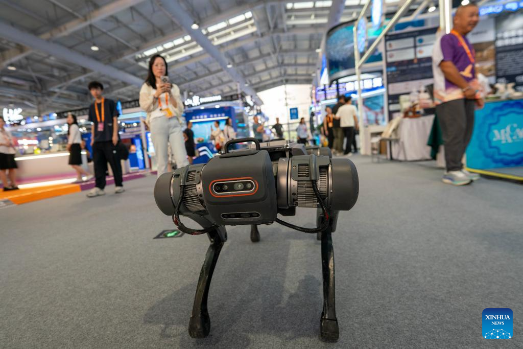 BEIJING, 11 septiembre, 2025 (Xinhua) -- Un perro robot camina por la sala de exposiciones en la Feria Internacional de Comercio de Servicios de China (CIFTIS, por sus siglas en inglés) 2025, en Beijing, capital de China, el 11 de septiembre de 2025. La CIFTIS 2025 abrió sus puertas el miércoles en Beijing bajo el tema "Abrazar tecnologías inteligentes, impulsar el comercio de servicios". (Xinhua/Xie Han)