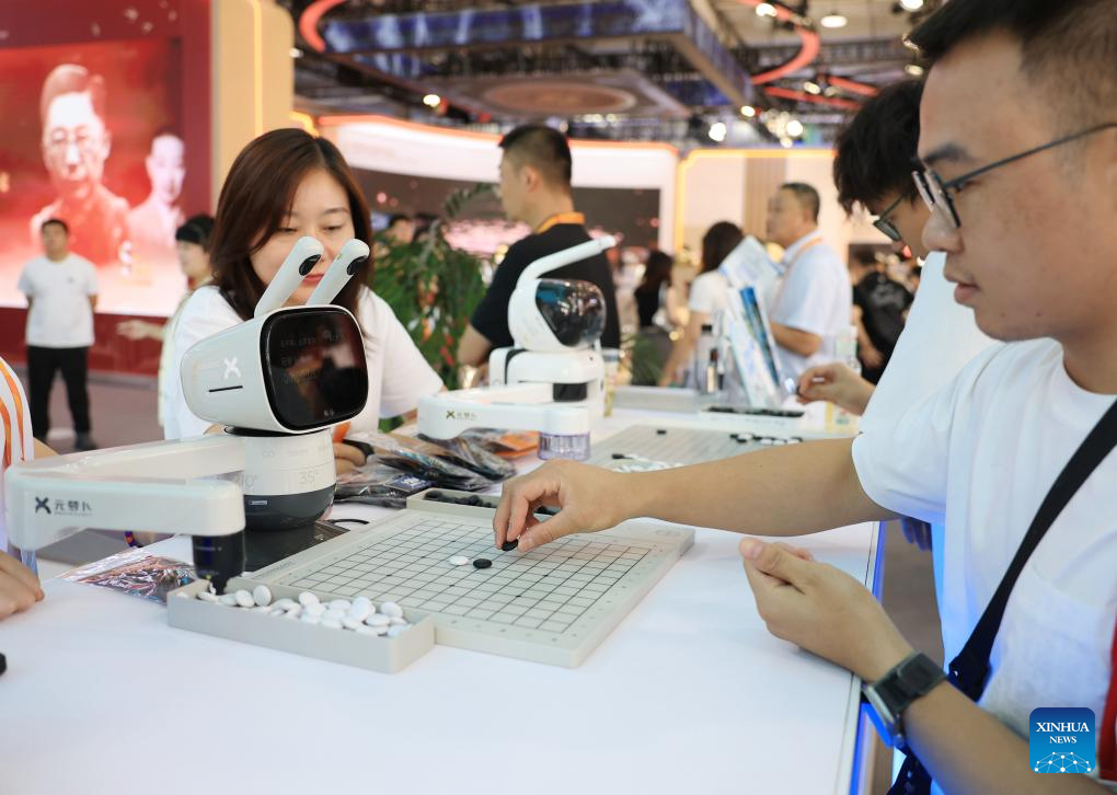 BEIJING, 11 septiembre, 2025 (Xinhua) -- Un visitante compite con un robot en un juego de Go, conocido como Weiqi en chino, en la Feria Internacional de Comercio de Servicios de China (CIFTIS, por sus siglas en inglés) 2025, en Beijing, capital de China, el 11 de septiembre de 2025. La CIFTIS 2025 abrió sus puertas el miércoles en Beijing bajo el tema "Abrazar tecnologías inteligentes, impulsar el comercio de servicios". (Xinhua/Zhang Chenlin)