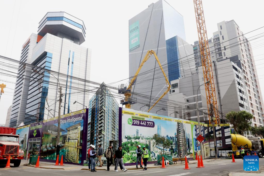 Obreros trabajan en la construcción de un edificio, en Lima, Perú, el 15 de septiembre de 2025. La economía de Perú creció 3,35 por ciento entre enero y julio de 2025, mientras que en el período anualizado de agosto de 2024 a julio de 2025 avanzó 3,65 por ciento, informó el lunes el Instituto Nacional de Estadística e Informática. (Xinhua/Mariana Bazo)