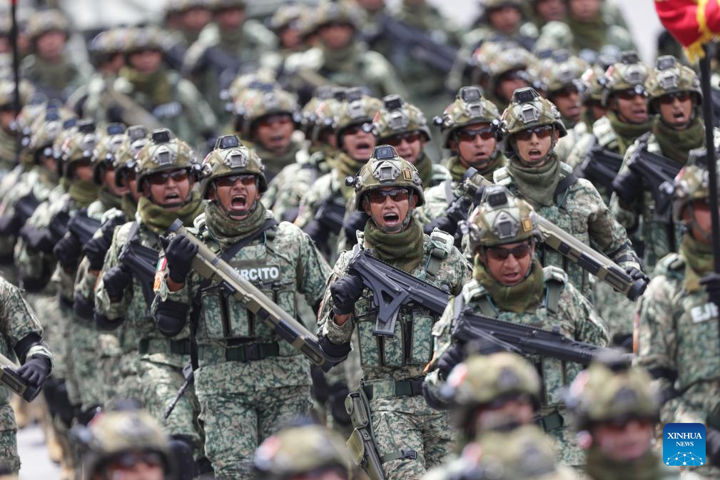 CIUDAD DE MEXICO, 16 septiembre, 2025 (Xinhua) -- Elementos del Ejército mexicano participa en el Desfile Cívico Militar en conmemoración del 215 aniversario de la Independencia de México, en la Ciudad de México, capital de México, el 16 de septiembre de 2025. México celebró el martes el aniversario 215 del inicio de la lucha independentista contra el colonialismo español con la realización del tradicional Desfile Cívico Militar en la Ciudad de México, con la particularidad de que por primera ocasión se presentaron honores y se rindió el parte de novedades a una mujer, Claudia Sheinbaum, primera presidenta y comandanta suprema de las Fuerzas Armadas del país latinoamericano. (Xinhua/Francisco Cañedo)