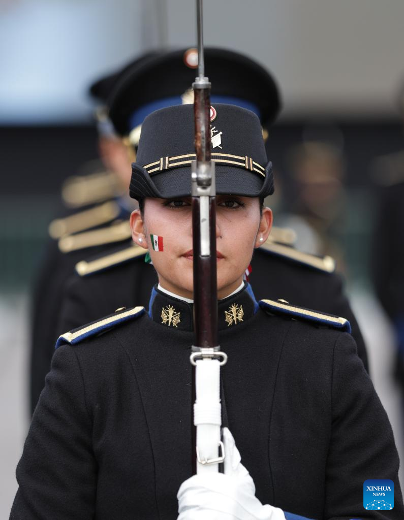 CIUDAD DE MEXICO, 16 septiembre, 2025 (Xinhua) -- Una integrante del Heroico Colegio Militar participa en el Desfile Cívico Militar en conmemoración del 215 aniversario de la Independencia de México, en la Ciudad de México, capital de México, el 16 de septiembre de 2025. México celebró el martes el aniversario 215 del inicio de la lucha independentista contra el colonialismo español con la realización del tradicional Desfile Cívico Militar en la Ciudad de México, con la particularidad de que por primera ocasión se presentaron honores y se rindió el parte de novedades a una mujer, Claudia Sheinbaum, primera presidenta y comandanta suprema de las Fuerzas Armadas del país latinoamericano. (Xinhua/Francisco Cañedo)