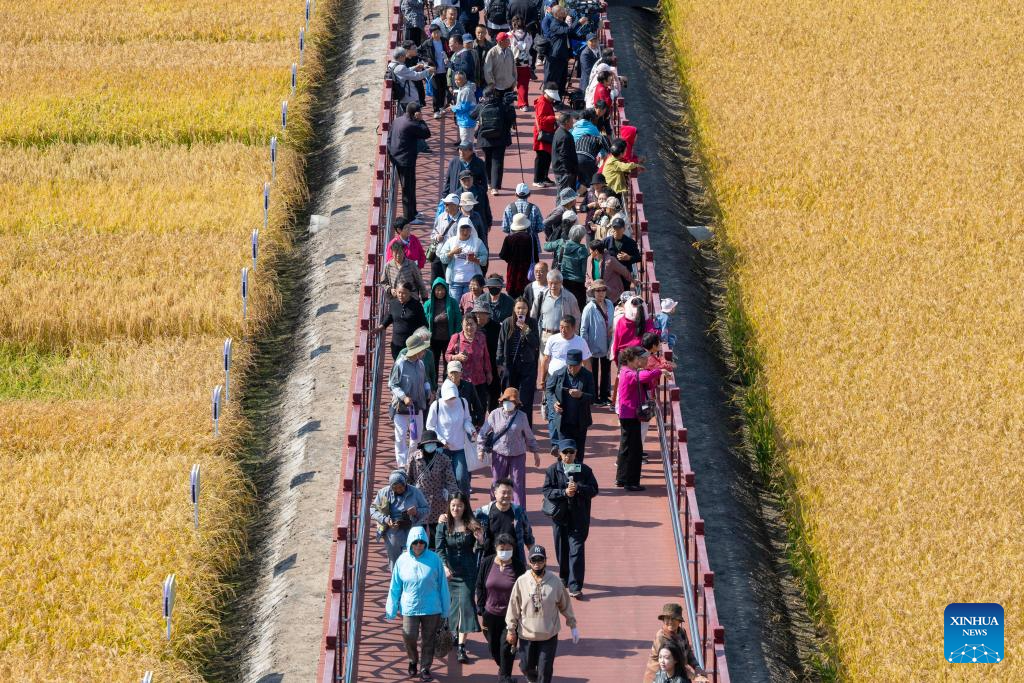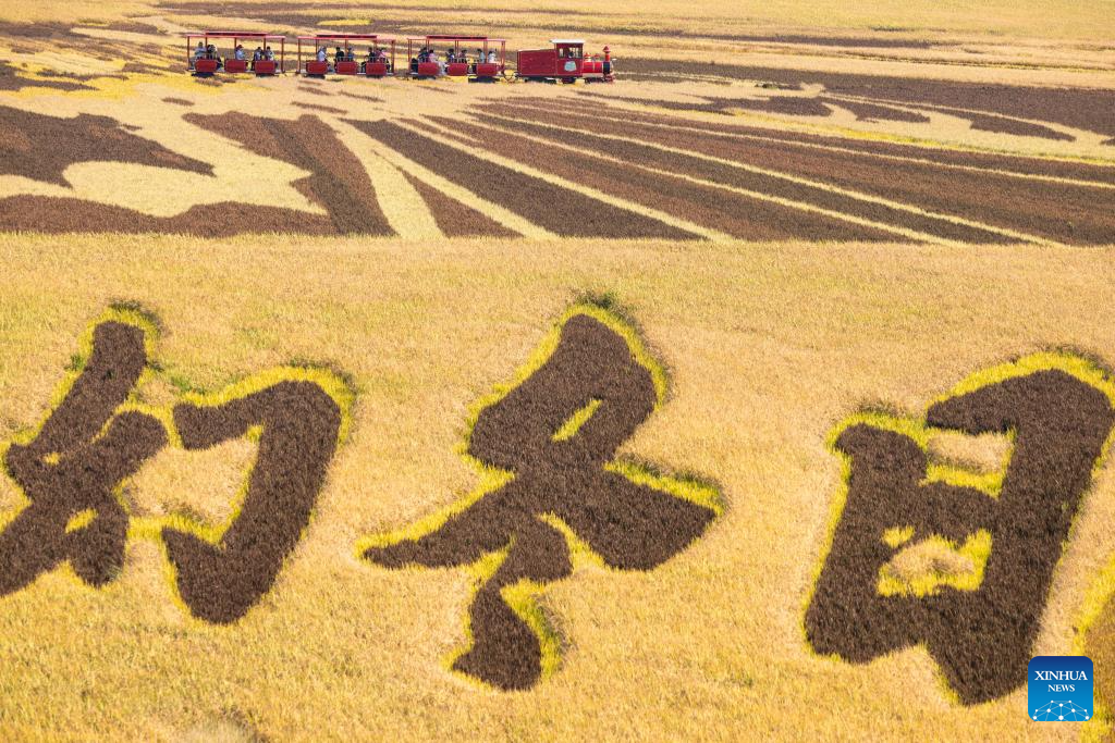 HARBIN, 23 septiembre, 2025 (Xinhua) -- Personas visitan un evento que celebra el octavo festival de la cosecha de los agricultores chinos en un parque artístico, en la provincia de Heilongjiang, en el noreste de China, el 23 de septiembre de 2025. El festival de la cosecha de los agricultores chinos es el primer festival nacional creado específicamente para los agricultores del país. (Xinhua/Zhang Tao)