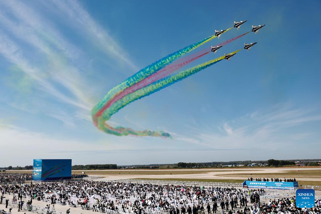 CHANGCHUN, 23 septiembre, 2025 (Xinhua) -- Aviones del Equipo Acrobático Aéreo Bayi de la Fuerza Aérea del Ejército Popular de Liberación (EPL) de China realizan una presentación durante las actividades de la jornada de puertas abiertas de aviación 2025 de la Fuerza Aérea del EPL de China y el Salón Aeronáutico de Changchun, en Changchun, en la provincia de Jilin, en el noreste de China, el 23 de septiembre de 2025. Los eventos concluyeron aquí el martes. (Xinhua/Tan Sicheng)