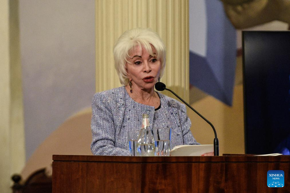 SANTIAGO, 23 septiembre, 2025 (Xinhua) -- La escritora, Isabel Allende, pronuncia un discurso tras recibir la Medalla Rectoral durante una ceremonia, en el Salón de Honor de la Casa Central de la Universidad de Chile, en Santiago, capital de Chile, el 23 de septiembre de 2025. (Xinhua/Jorge Villegas)
