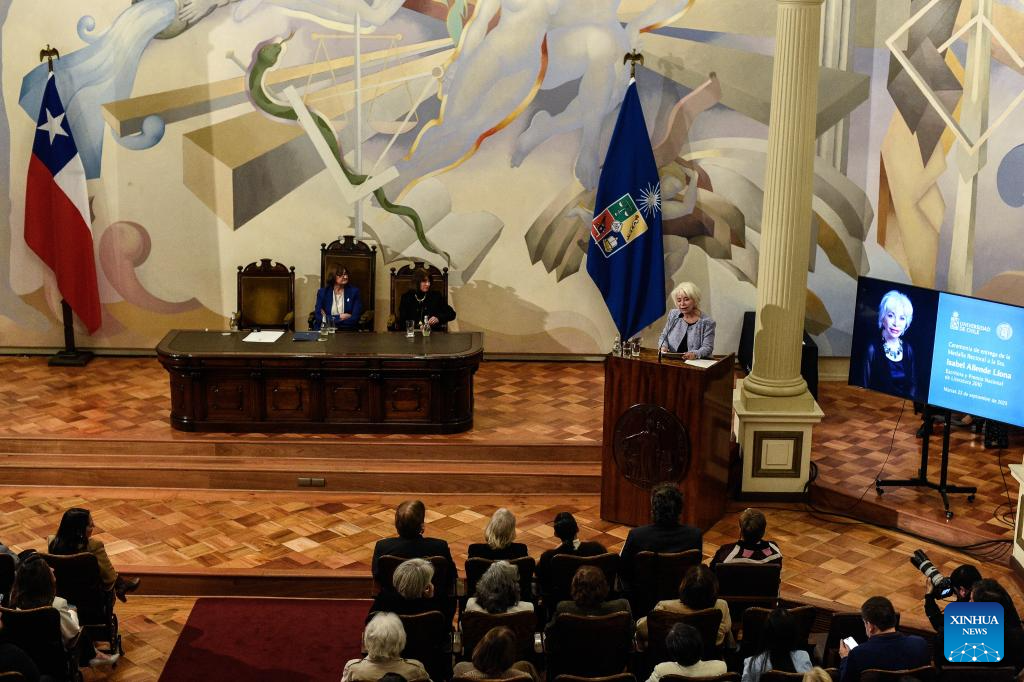 SANTIAGO, 23 sep (Xinhua) -- La escritora chilena Isabel Allende Llona recibió este martes la Medalla Rectoral de la Universidad de Chile por su contribución a la literatura a través de una obra que ha puesto a Chile en el mundo y a la mujer como protagonista.