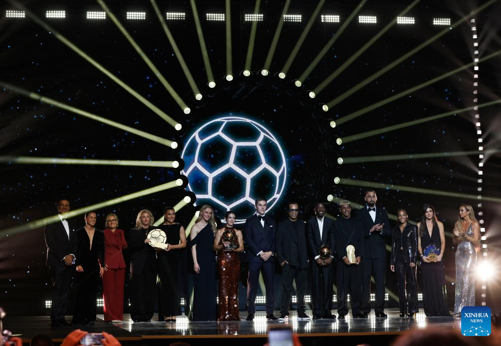 PARIS, 23 septiembre, 2025 (Xinhua) -- Imagen del 22 de septiembre de 2025 de los ganadores de los premios Balón de Oro 2025 de France Football posando para una fotografía durante la ceremonia de premiación del Balón de Oro 2025 de France Football en el Teatro del Chatelet, en París, Francia. (Xinhua/Gao Jing)
