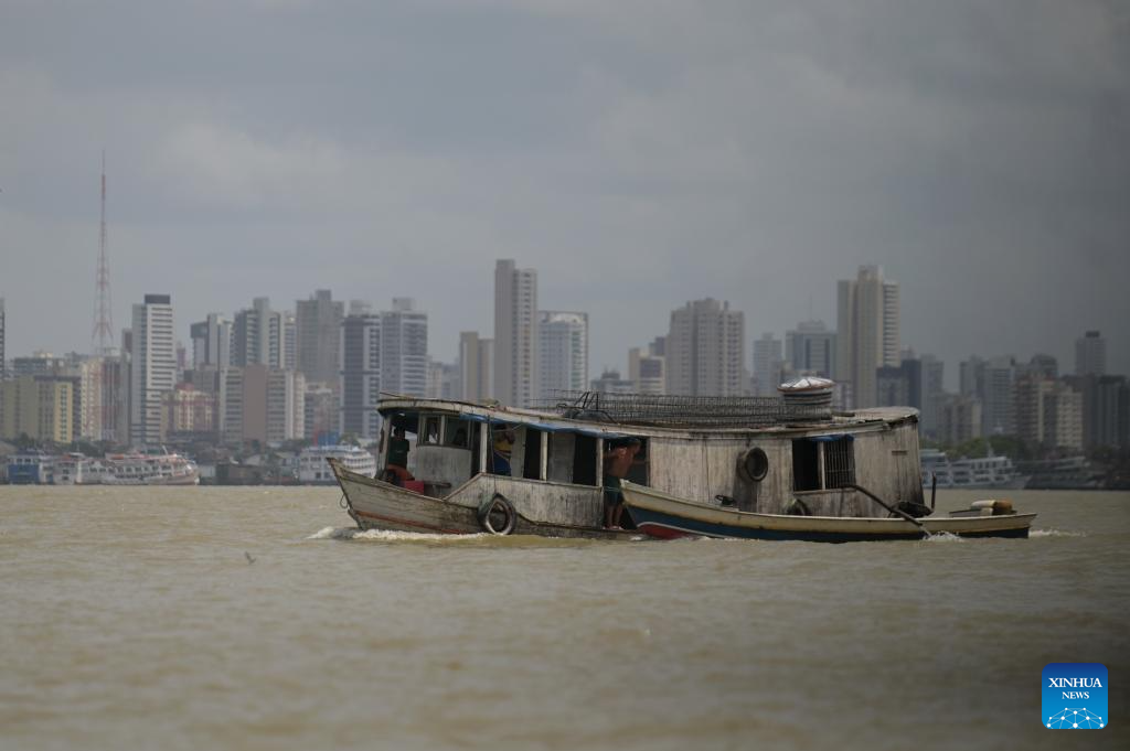 BELEM, 3 octubre, 2025 (Xinhua) -- Un bote navega por el río Guamá, cerca de la Isla de Cumbú, en Belém, en el estado de Pará, Brasil, el 3 de octubre de 2025. El Servicio Brasileño de Apoyo a las Micro y Pequeñas Empresas, paraestatal financiada por el Gobierno de Brasil y el sector privado, lanzó en idioma chino la versión de su video institucional para la 30ª Conferencia de las Partes (COP30) de Naciones Unidas sobre Cambio Climático a efectuarse en noviembre en el estado de Pará. (Xinhua/Lucio Tavora)