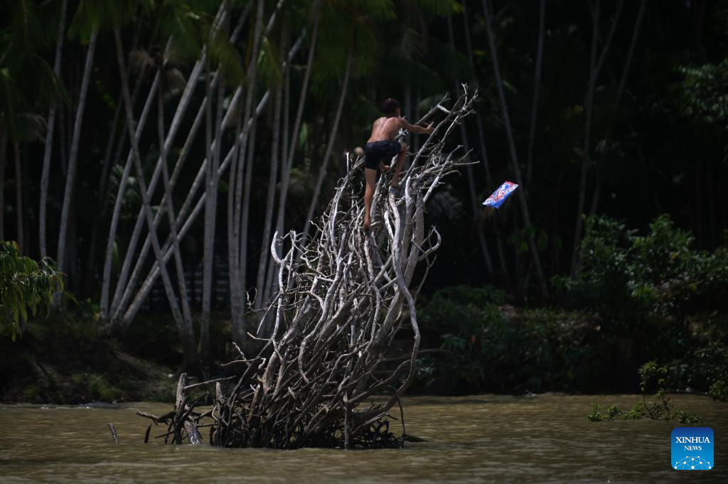 BELEM, 3 octubre, 2025 (Xinhua) -- Un niño trepa un arbusto en la orilla del río Guamá, en la Isla de Cumbú, en Belém, en el estado de Pará, Brasil, el 3 de octubre de 2025. El Servicio Brasileño de Apoyo a las Micro y Pequeñas Empresas, paraestatal financiada por el Gobierno de Brasil y el sector privado, lanzó en idioma chino la versión de su video institucional para la 30ª Conferencia de las Partes (COP30) de Naciones Unidas sobre Cambio Climático a efectuarse en noviembre en el estado de Pará. (Xinhua/Lucio Tavora)
