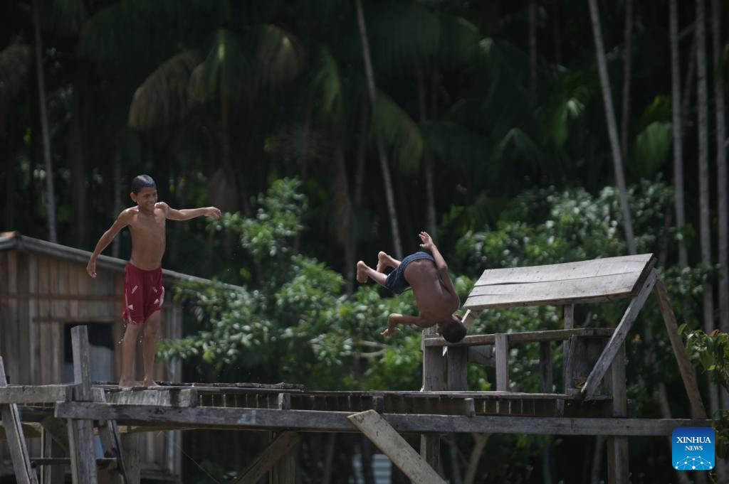BELEM, 3 octubre, 2025 (Xinhua) -- Un niño salta al agua en un embarcadero en la orilla del río Guamá, en la Isla de Cumbú, en Belém, en el estado de Pará, Brasil, el 3 de octubre de 2025. El Servicio Brasileño de Apoyo a las Micro y Pequeñas Empresas, paraestatal financiada por el Gobierno de Brasil y el sector privado, lanzó en idioma chino la versión de su video institucional para la 30ª Conferencia de las Partes (COP30) de Naciones Unidas sobre Cambio Climático a efectuarse en noviembre en el estado de Pará. (Xinhua/Lucio Tavora)