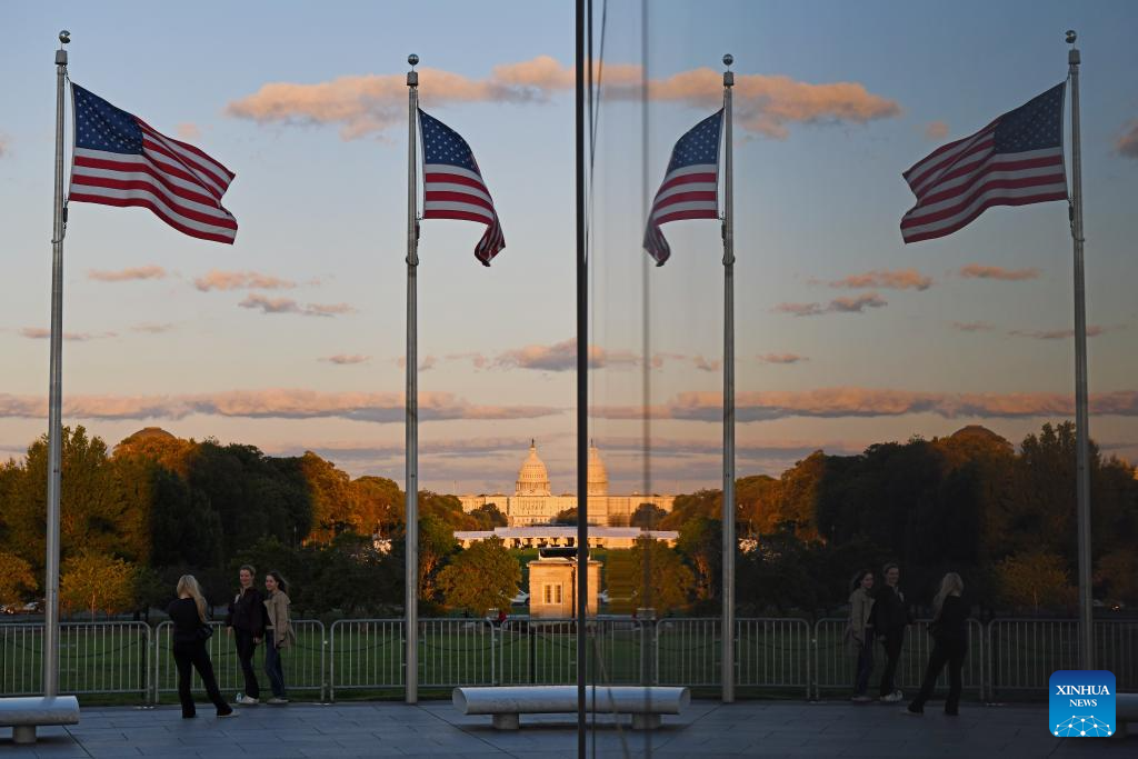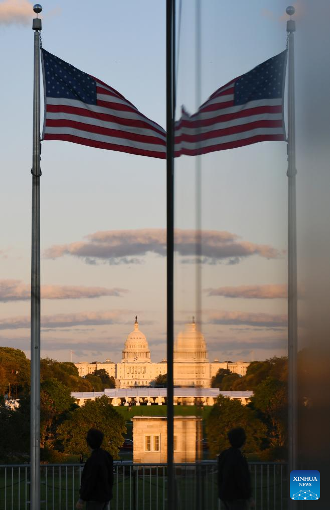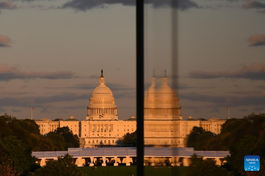 Imagen del 8 de octubre de 2025 del edificio del Capitolio de Estados Unidos al atardecer, en Washington, D.C., Estados Unidos. El Senado de Estados Unidos no logró aprobar el miércoles por sexta vez los proyectos de ley de financiación, lo que prolonga el estancamiento del cierre del Gobierno federal. (Xinhua/Li Rui)