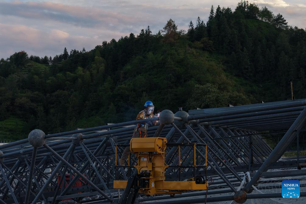 LISHUI, 14 octubre de 2025 (Xinhua) -- Un trabajador labora en el sitio de construcción de una estación del ferrocarril Quzhou-Lishui, en Lishui, en la provincia de Zhejiang, en el este de China, el 14 de octubre de 2025. La línea ferroviaria de 160 kilómetros mejorará aún más la red ferroviaria regional y promoverá eficazmente el desarrollo del turismo en el suroeste de Zhejiang. (Xinhua/Huang Zongzhi)
