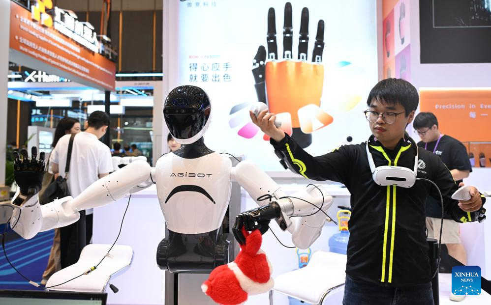 GUANGZHOU, 16 octubre, 2025 (Xinhua) -- Imagen del 15 de octubre de 2025 de compradores extranjeros interactuando con manos robóticas en la Zona de Robots de Servicio durante la 138ª edición de la Feria de Importación y Exportación de China (Feria de Cantón), en Guangzhou, en la provincia de Guangdong, en el sur de China. La feria destaca la Zona de Robots de Servicio para mostrar innovaciones de vanguardia, como robots humanoides, robots exoesqueleto, robots de patrullaje esféricos, robots de limpieza fotovoltaicos, robots educativos, etc. (Xinhua/Deng Hua)