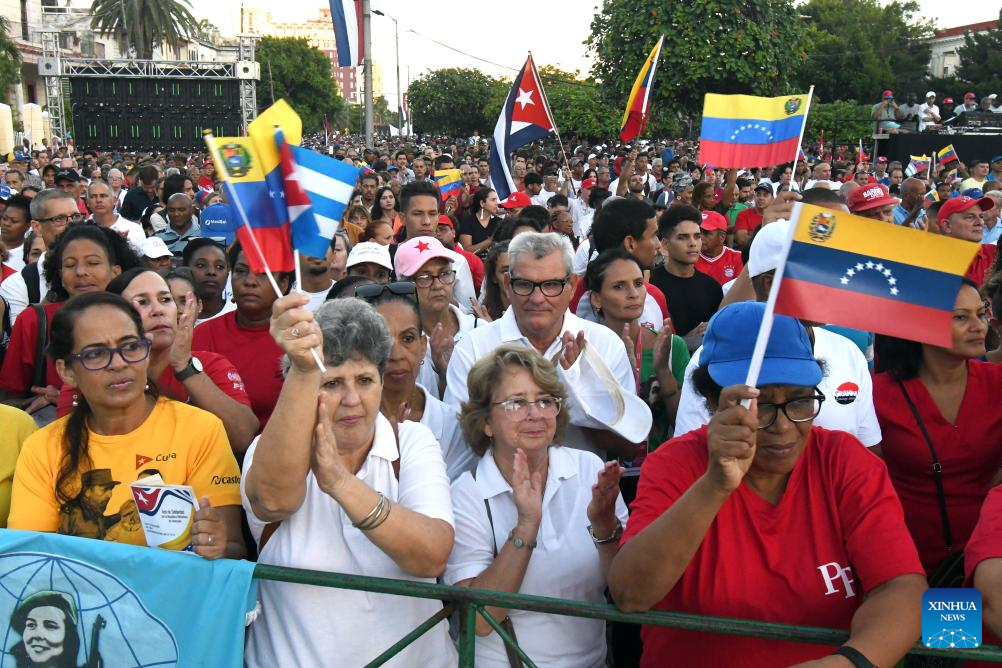 LA HABANA, 17 oct (Xinhua) -- Miles de cubanos se dieron cita hoy viernes en la ciudad de La Habana, la capital, para ratificar su solidaridad con el pueblo y el Gobierno de Venezuela, ante la escalada injerencista de Estados Unidos contra la nación sudamericana.