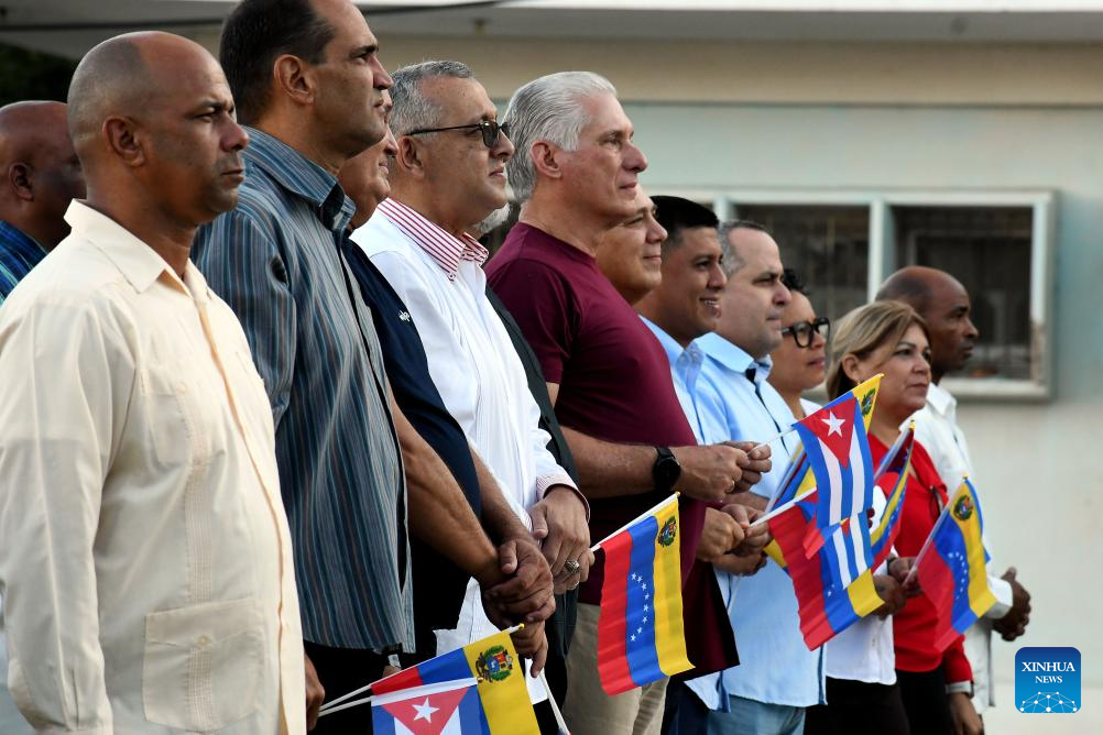 LA HABANA, 17 octubre, 2025 (Xinhua) -- El presidente cubano, Miguel Díaz-Canel (5-i), asiste al acto de apoyo a la causa venezolana y de rechazo a la injerencia de Estados Unidos, en La Habana, capital de Cuba, el 17 de octubre de 2025. Miles de cubanos se dieron cita el viernes en la ciudad de La Habana, para ratificar su solidaridad con el pueblo y el Gobierno de Venezuela, ante la escalada injerencista de Estados Unidos contra la nación sudamericana. (Xinhua/Joaquín Hernández)