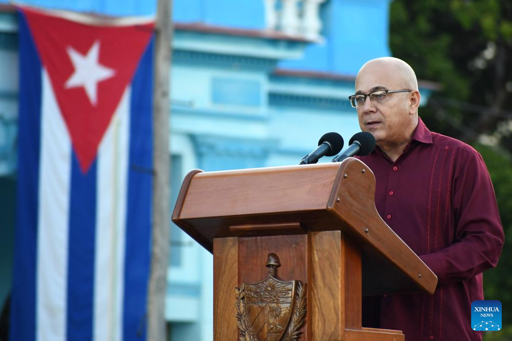 LA HABANA, 17 octubre, 2025 (Xinhua) -- El secretario de la Organización del Comité Central del Partido Comunista de Cuba y miembro del Buró Político, Roberto Morales, habla durante un acto de apoyo a la causa venezolana y de rechazo a la injerencia de Estados Unidos, en La Habana, capital de Cuba, el 17 de octubre de 2025. Miles de cubanos se dieron cita el viernes en la ciudad de La Habana, para ratificar su solidaridad con el pueblo y el Gobierno de Venezuela, ante la escalada injerencista de Estados Unidos contra la nación sudamericana. (Xinhua/Joaquín Hernández)