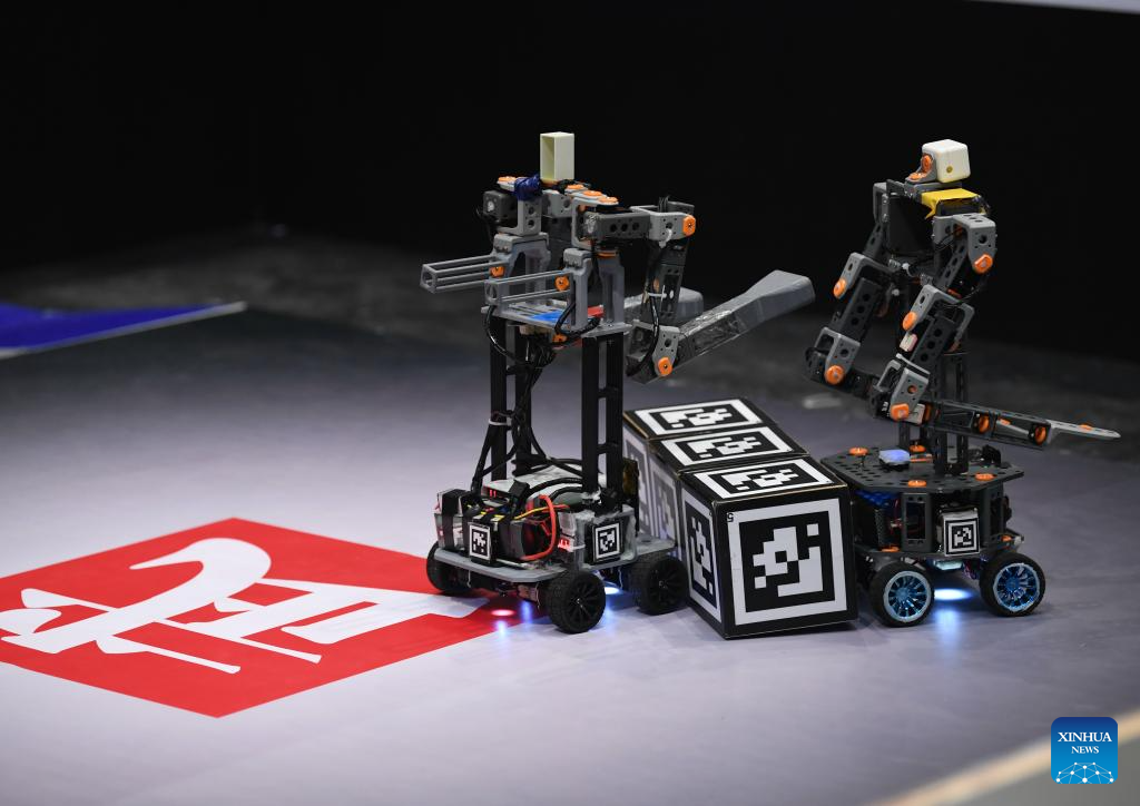 SHIJIAZHUANG, 17 octubre, 2025 (Xinhua) -- Robots participan en una competencia de artes marciales en el Centro Internacional de Convenciones y Exposiciones, en Shijiazhuang, en la provincia de Hebei, en el norte de China, el 17 de octubre de 2025. La Competencia de Robots de China 2025 y el RoboCup China Open se celebran aquí desde el viernes hasta el domingo. (Xinhua/Yang Shiyao)