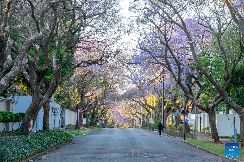 JOHANNESBURGO, 17 octubre, 2025 (Xinhua) -- Imagen del 16 de octubre de 2025 de árboles de jacaranda floreciendo, en Johannesburgo, Sudáfrica. Los árboles de jacaranda florecen aquí desde mediados de octubre hasta principios de noviembre cada año. (Xinhua/Shiraaz Mohamed)