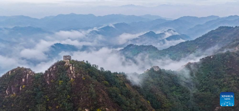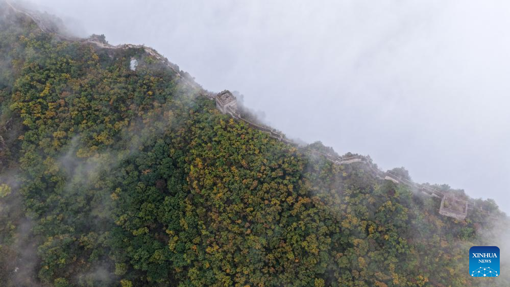 ZUNHUA, 17 octubre, 2025 (Xinhua) -- Vista aérea tomada con un dron el 17 de octubre de 2025 de la Gran Muralla, en la ciudad de Zunhua, en la provincia de Hebei, en el norte de China. (Xinhua/Liu Mancang)