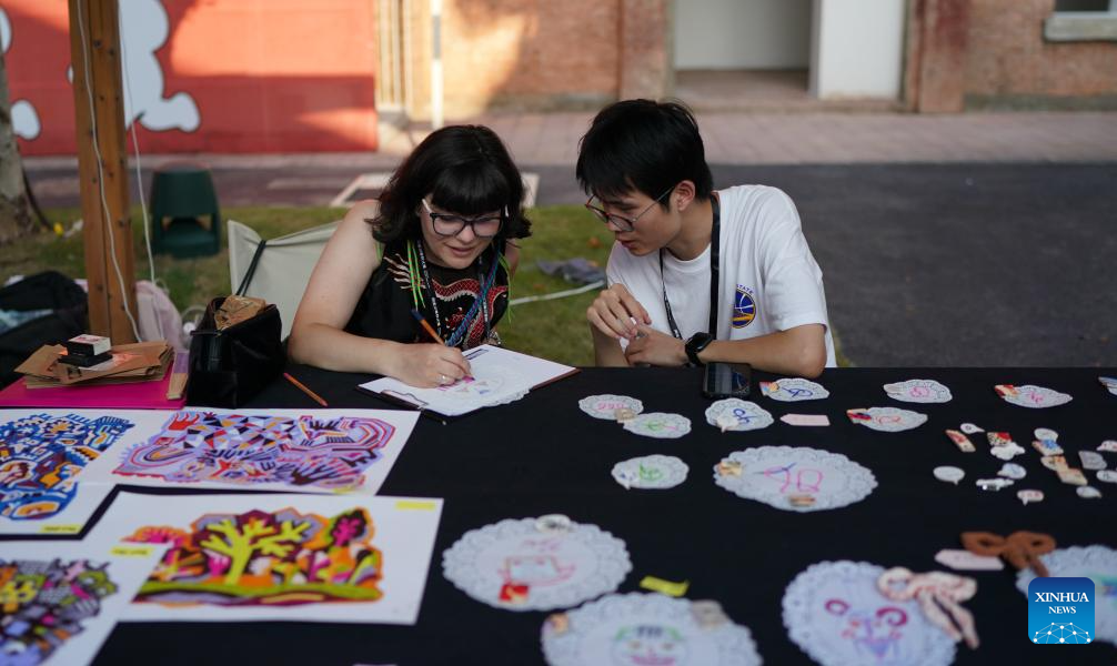 JINGDEZHEN, 18 octubre, 2025 (Xinhua) -- Imagen del 17 de octubre de 2025 de artistas conversando en un carnaval de cerámica llevado a cabo como un evento paralelo de la Exposición Internacional de Cerámica de Jingdezhen de China 2025, en Jingdezhen, en la provincia de Jiangxi, en el este de China. La Exposición Internacional de Cerámica de Jingdezhen de China 2025 fue inaugurada el 18 de octubre en Jingdezhen, una ciudad del este de China conocida como la "capital de la porcelana", atrayendo a más de 1.000 compradores nacionales y extranjeros. (Xinhua/Zhou Mi)