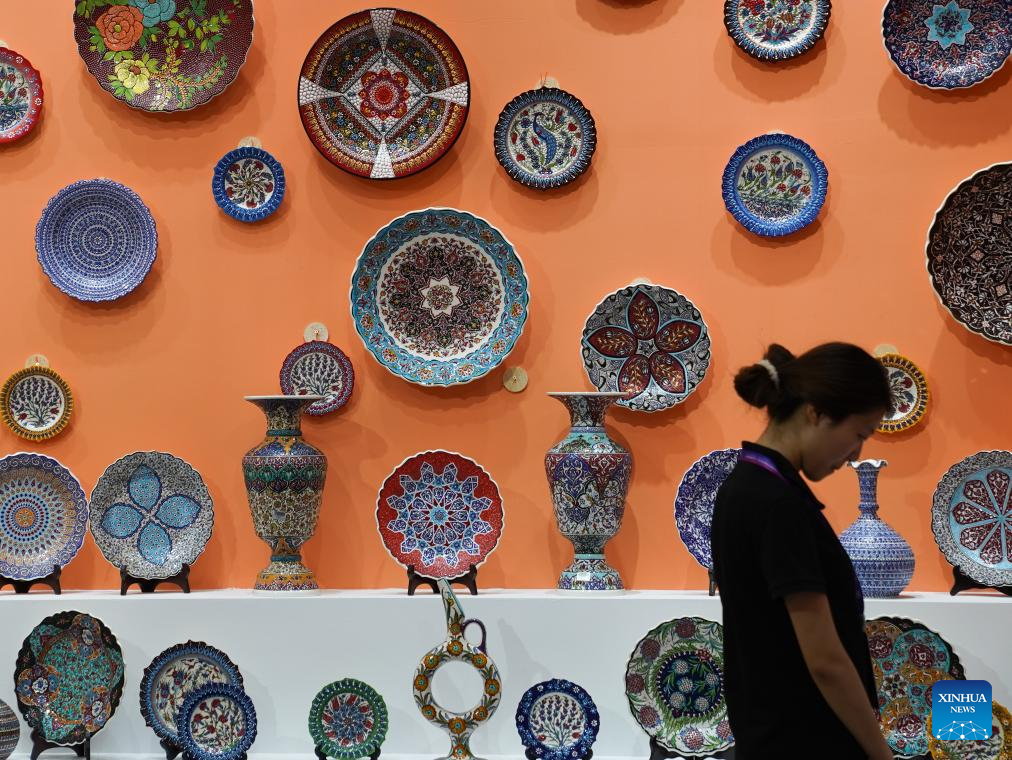 JINGDEZHEN, 18 octubre, 2025 (Xinhua) -- Una visitante recorre el área de exposición de Turquía durante la Exposición Internacional de Cerámica de Jingdezhen de China 2025, en Jingdezhen, en la provincia de Jiangxi, en el este de China, el 18 de octubre de 2025. La Exposición Internacional de Cerámica de Jingdezhen de China 2025 fue inaugurada el 18 de octubre en Jingdezhen, una ciudad del este de China conocida como la "capital de la porcelana", atrayendo a más de 1.000 compradores nacionales y extranjeros. (Xinhua/Zhou Mi)
