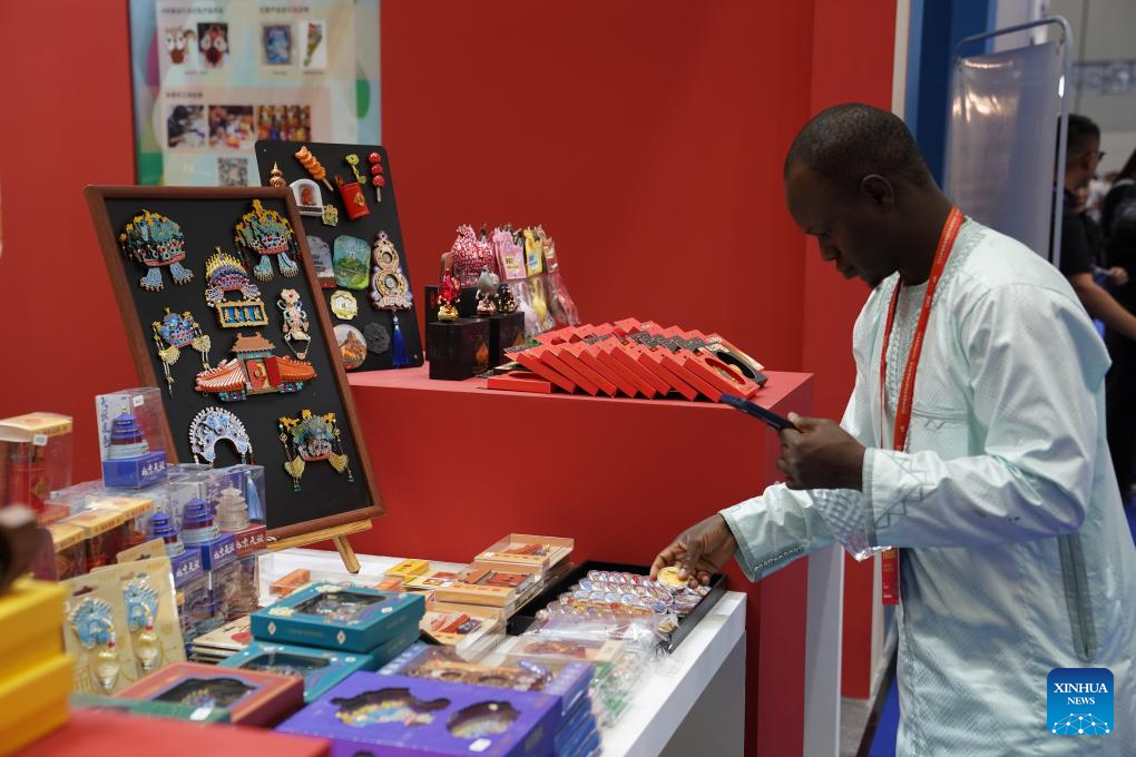 JINGDEZHEN, 18 octubre, 2025 (Xinhua) -- Un expositor extranjero selecciona productos culturales y creativos durante la Exposición Internacional de Cerámica de Jingdezhen de China 2025, en Jingdezhen, en la provincia de Jiangxi, en el este de China, el 18 de octubre de 2025. La Exposición Internacional de Cerámica de Jingdezhen de China 2025 fue inaugurada el 18 de octubre en Jingdezhen, una ciudad del este de China conocida como la "capital de la porcelana", atrayendo a más de 1.000 compradores nacionales y extranjeros. (Xinhua/Zhou Mi)