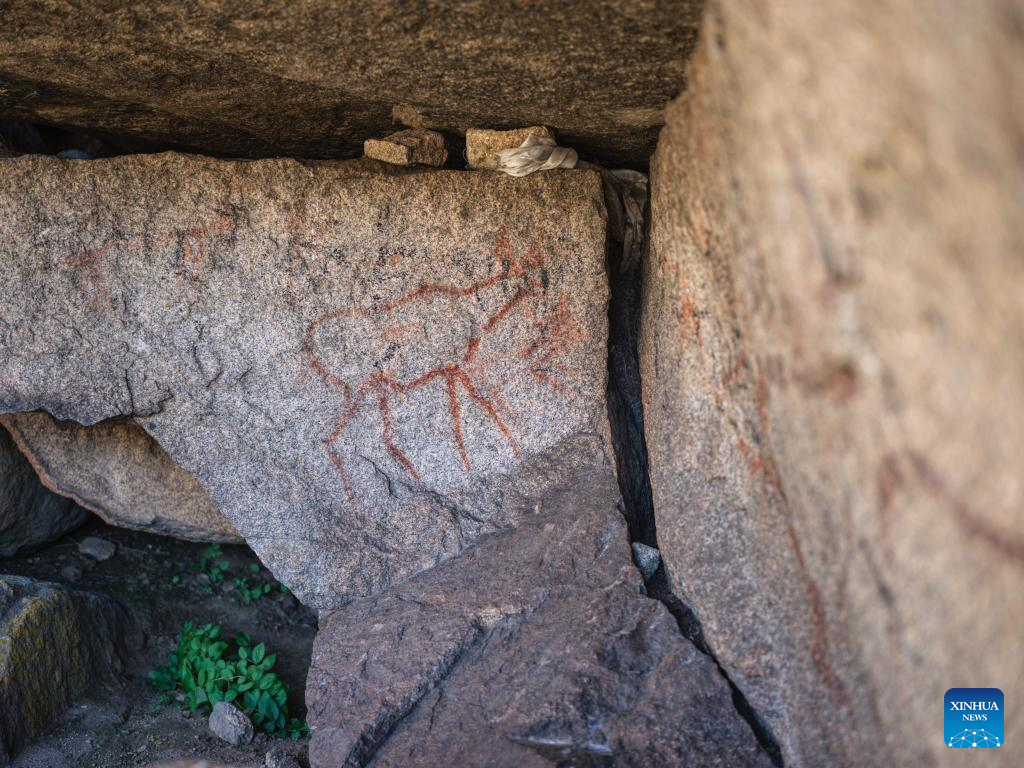 CHENGDU, 22 octubre, 2025 (Xinhua) -- Imagen del 21 de octubre de 2025 de una pintura rupestre, en la prefectura autónoma tibetana de Garze, en la provincia de Sichuan, en el suroeste de China. Este grupo de pinturas rupestres en la prefectura data de hace unos 8.000 años. (Xinhua/Xue Chen)