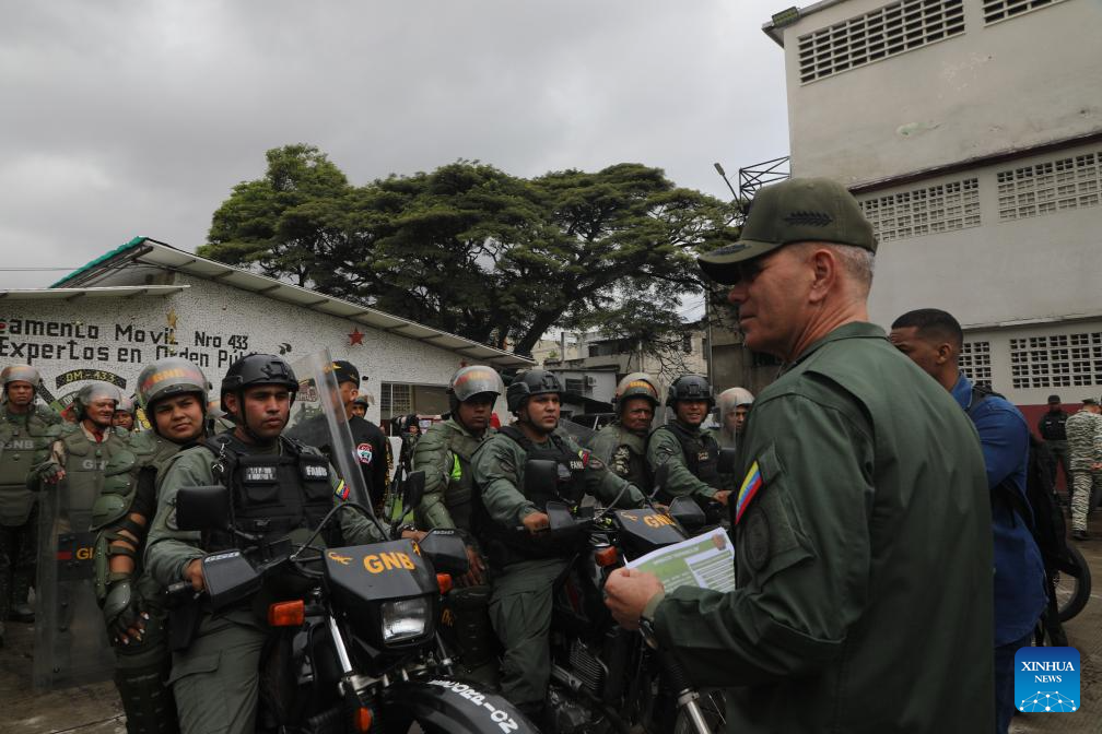 CARACAS, 23 octubre, 2025 (Xinhua) -- Imagen proveída por el Ministerio para la Defensa de Venezuela de integrantes de la Guardia Nacional Bolivariana participando durante la realización de los ejercicios de defensa de Costa Independencia 200, en Caracas, Venezuela, el 23 de octubre de 2025. El ministro venezolano de Defensa, Vladimir Padrino López, informó el jueves que las operaciones militares en curso tienen como objetivo salvaguardar el territorio nacional ante posibles amenazas extranjeras. (Xinhua/Ministerio para la Defensa de Venezuela)