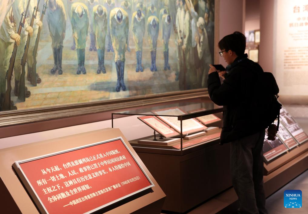 BEIJING, 25 octubre, 2025 (Xinhua) -- Personas visitan "La Isla del Tesoro Inquebrantable: Leal a la Patria", una exposición sobre la historia de la resistencia de los compatriotas de Taiwan contra la agresión japonesa, en el Museo de la Guerra de Resistencia del Pueblo Chino contra la Agresión Japonesa, en Beijing, capital de China, el 25 de octubre de 2025. Con 387 fotografías de archivo y 453 reliquias culturales, la exposición fue inaugurada aquí el sábado para conmemorar el 80º aniversario de la recuperación de Taiwan por parte de China. (Xinhua/Zhang Chenlin)