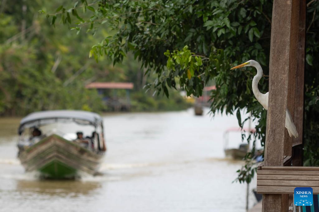 Imagen proveída por la Confederación Nacional de Agrícola (CNA) de Brasil del 21 de octubre de 2025 de un barco navegando frente a una garceta en el "igarapé" (palabra brasileña para describir un curso de agua estrecho y de poca profundidad) del Río Guamá que conduce a la isla de Combú, frente a la ciudad de Belém, en el estado de Pará, en la región norte de Brasil. En la ribera del río Guamá, frente a la ciudad brasileña de Belém, la isla de Combú se ha convertido en un símbolo del equilibrio entre desarrollo, cultura y preservación ambiental y es también el lugar donde se transforma el cacao nativo de la selva en uno de los chocolates artesanales más reconocidos de la Amazonia. (Xinhua/CNA)