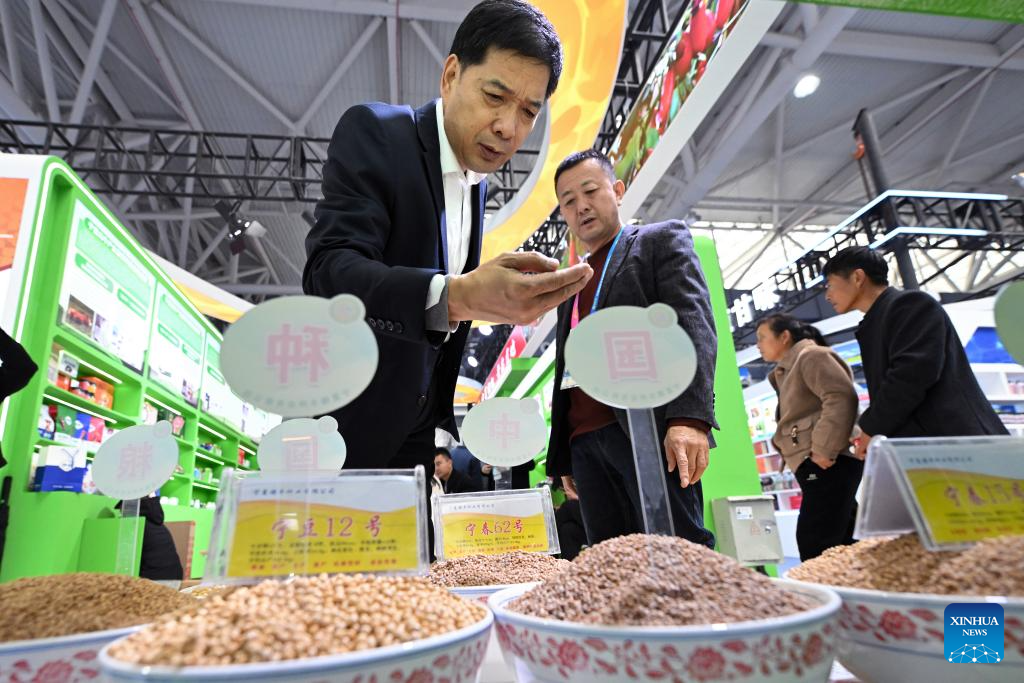 XI'AN, 25 octubre, 2025 (Xinhua) -- Personas visitan la 32 Feria de Alta Tecnología Agrícola de Yangling de China, en Yangling, en la provincia de Shaanxi, en el noroeste de China, el 25 de octubre de 2025. Presentando innovaciones en logros de alta tecnología agrícola, la 32 Feria de Alta Tecnología Agrícola de Yangling de China comenzó aquí el sábado. (Xinhua/Li Yibo)