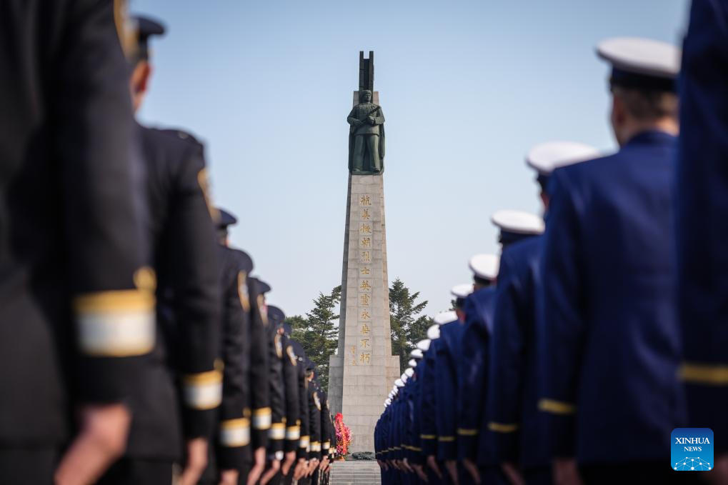 SHENYANG, 25 octubre, 2025 (Xinhua) -- Una ceremonia de presentación de cestas de flores se lleva a cabo en el cementerio de los mártires de los Voluntarios del Pueblo Chino (VPCh), en Shenyang, en la provincia de Liaoning, en el noreste de China, el 25 de octubre de 2025. La provincia de Liaoning realizó el sábado ceremonias de presentación de cestas de flores en Shenyang y Dandong para conmemorar el 75º aniversario del ingreso a la República Popular Democrática de Corea de los VPCh para luchar en la Guerra de Resistencia contra la Agresión de Estados Unidos y de Ayuda a Corea. (Xinhua/Pan Yulong)