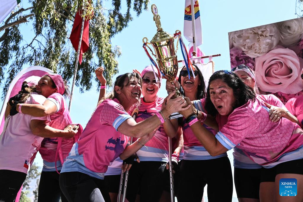SANTIAGO, 27 oct (Xinhua) -- Chile celebró el domingo la tercera competencia latinoamericana de botes de dragón, iniciada por las Remadoras Rosas, un movimiento global de mujeres supervivientes de cáncer de mama que se rehabilitan juntas con la práctica del remo, gracias a sus beneficios físicos y psicológicos.