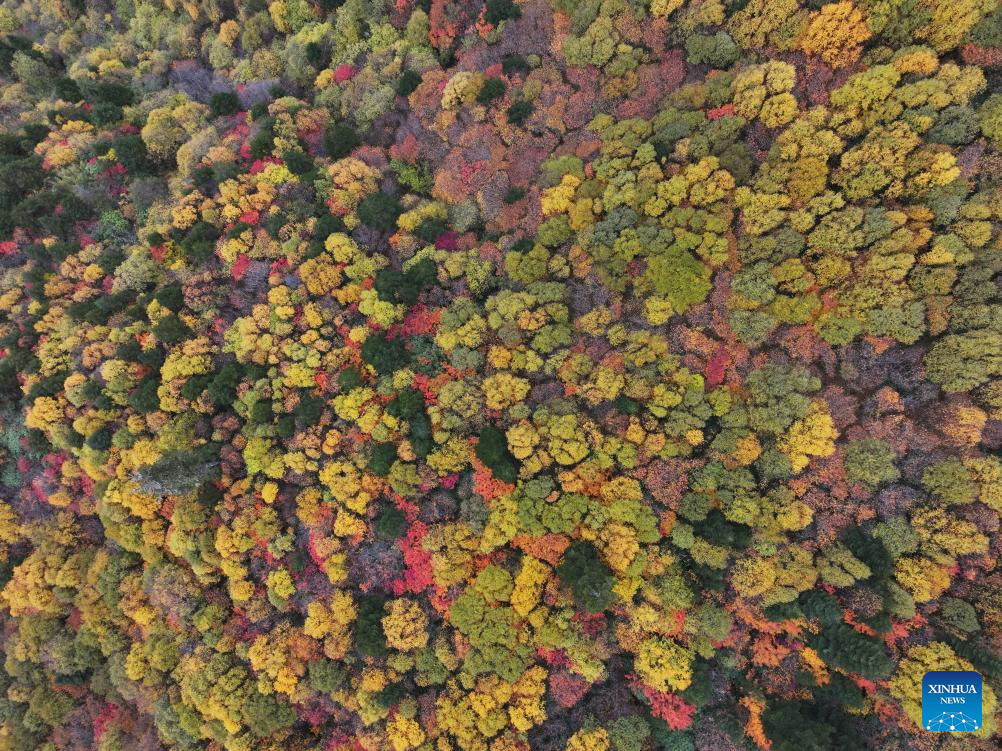 NYINGCHI, 28 octubre, 2025 (Xinhua) -- Vista aérea tomada con un dron el 28 de octubre de 2025 del paisaje de otoño de la montaña Serkyim La, en Nyingchi, en la región autónoma de Xizang, en el suroeste de China. (Xinhua/Lu Danyang)
