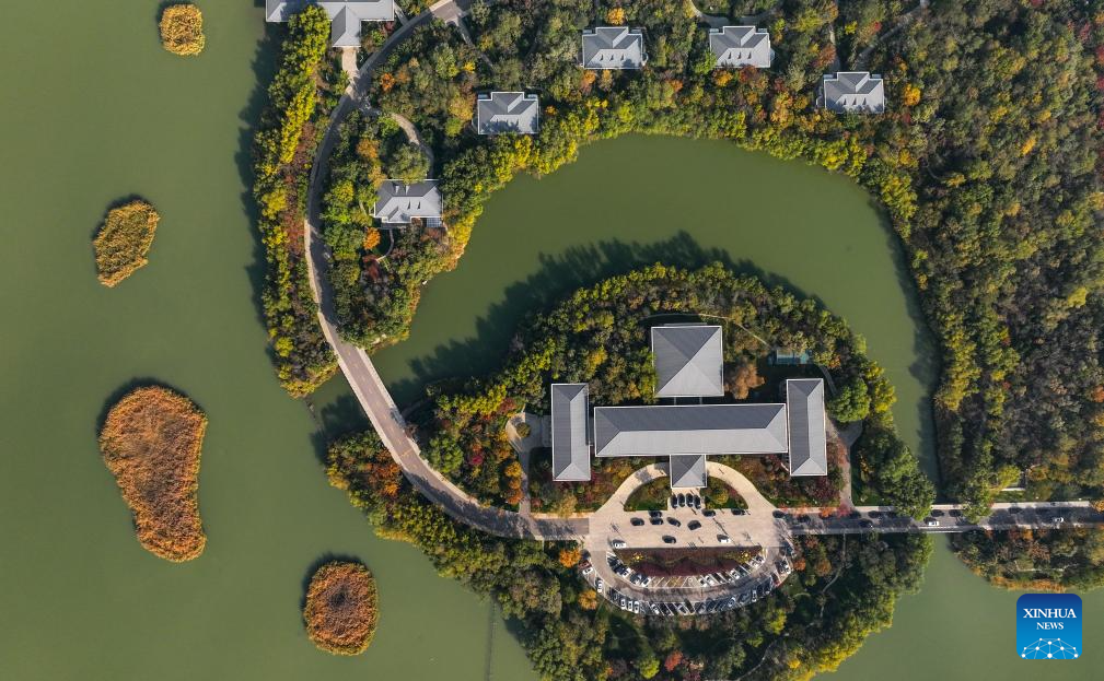 YINCHUAN, 29 octubre, 2025 (Xinhua) -- Vista aérea tomada con un dron el 28 de octubre de 2025 del paisaje otoñal del parque Haibao, en Yinchuan, en la región autónoma de la etnia hui de Ningxia, en el noroeste de China. Yinchuan, conocida como ciudad internacional de humedales, cuenta con casi 200 lagos naturales y humedales pantanosos, que cubren una superficie de 53.100 hectáreas. (Xinhua/Feng Kaihua)