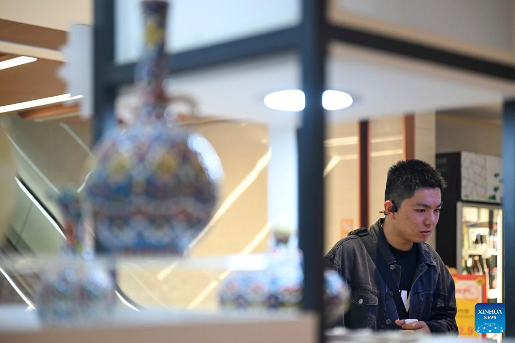 SHANGHAI, 1 noviembre, 2025 (Xinhua) -- Un hombre selecciona productos en la Bazaar City Arena de la Exposición Internacional de Importaciones de China (CIIE, por sus siglas en inglés), en Shanghai, en el este de China, el 1 de noviembre de 2025. La 8ª CIIE está programada para celebrarse aquí del 5 al 10 de noviembre. (Xinhua/Chen Haoming)