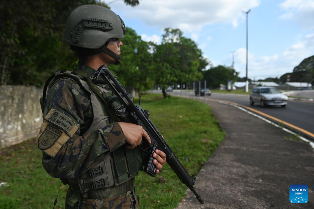 BELEM, 3 noviembre, 2025 (Xinhua) -- Un soldado de la Fuerza Aérea patrulla una calle durante una operación de Garantía de Ley y del Orden previo al inicio de la 30ª Conferencia de las Partes (COP30) de la Convención Marco de las Naciones Unidas sobre el Cambio Climático, en Belém, estado de Pará, Brasil, el 3 de noviembre de 2025. El presidente de Brasil, Luiz Inácio Lula da Silva, firmó un decreto, publicado el lunes en el Diario Oficial de la Unión, que autoriza la movilización de las Fuerzas Armadas en operaciones de Garantía de la Ley y del Orden en la ciudad de Belém do Pará hasta el 23 de noviembre próximo. (Xinhua/Lucio Tavora)
