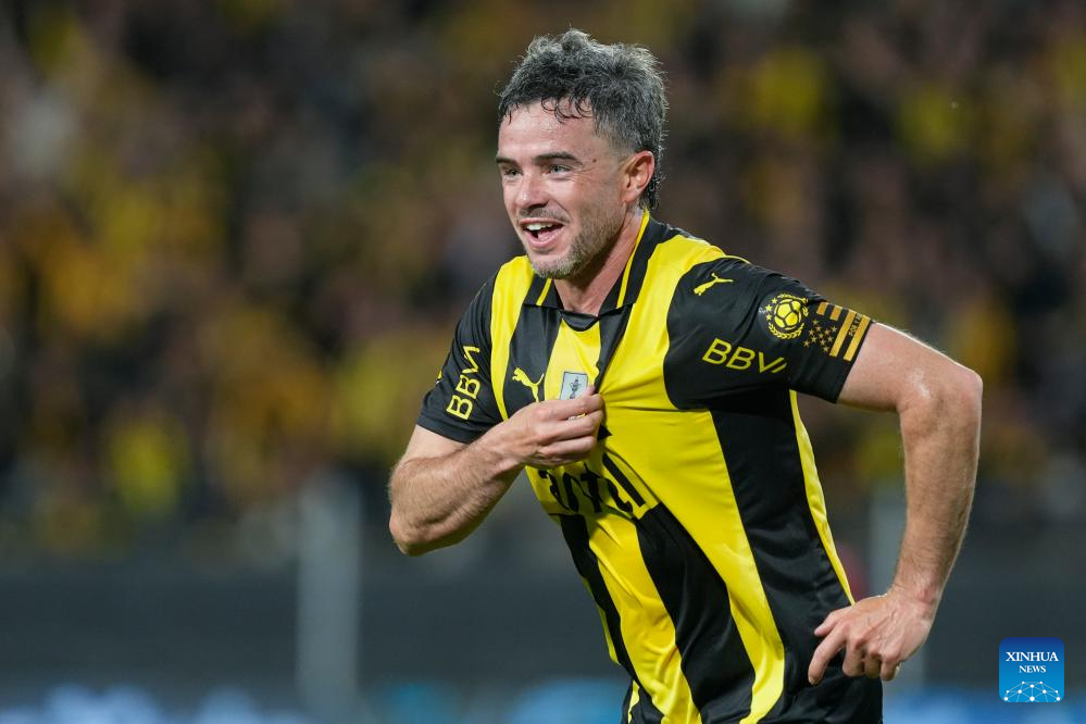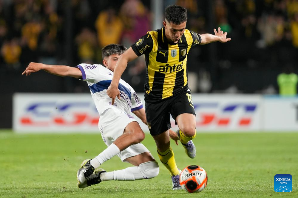 MONTEVIDEO, 3 noviembre, 2025 (Xinhua) -- Imagen del 2 de noviembre de 2025 del jugador Lucas Hernández, de Peñarol, festejando su anotación durante el partido correspondiente al Torneo Clausura del Campeonato Uruguayo de Fútbol ante Defensor Sporting, celebrado en el Estadio Campeón del Siglo, en Montevideo, capital de Uruguay. (Xinhua/Nicolás Celaya)