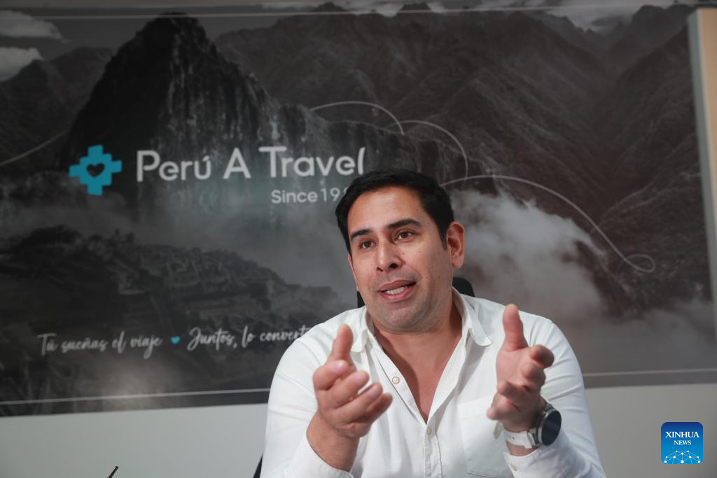 Imagen del 3 de noviembre de 2025 de Publio Santander, gerente de producto y marketing de la empresa turística Perú A Travel, hablando durante una entrevista con la Agencia de Noticias Xinhua, en Lima, Perú. Empresarios peruanos de los sectores turístico y agrícola que participan en la VIII Exposición Internacional de Importaciones de China (CIIE, por sus siglas en inglés) destacaron la relevancia de este evento no solo como una plataforma comercial, sino también como un espacio clave para fortalecer el intercambio cultural entre Perú y China. (Xinhua/Mariana Bazo)