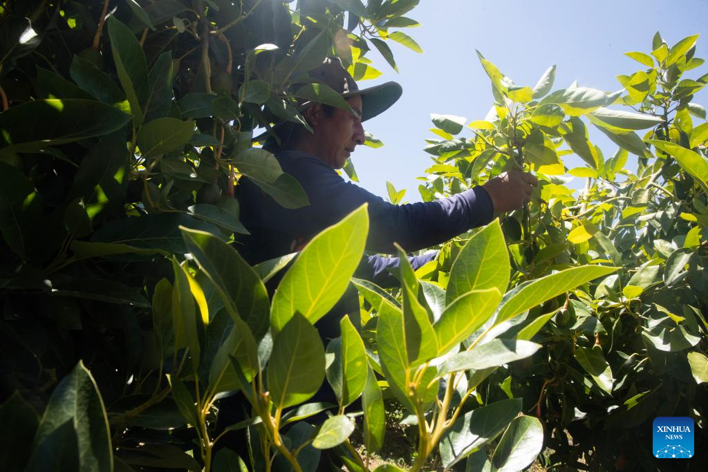 Imagen del 1 de noviembre de 2025 de Enrique Melgarejo, agricultor del Fundo Don Moisés Añascary, recolectando paltas, en Huaral, Perú. Empresarios peruanos de los sectores turístico y agrícola que participan en la VIII Exposición Internacional de Importaciones de China (CIIE, por sus siglas en inglés) destacaron la relevancia de este evento no solo como una plataforma comercial, sino también como un espacio clave para fortalecer el intercambio cultural entre Perú y China. (Xinhua/Mariana Bazo)
