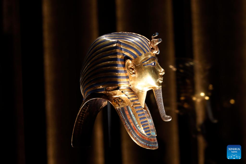 GIZA, 5 noviembre, 2025 (Xinhua) -- Imagen del 4 de noviembre de 2025 de una máscara de oro en la sala de exposiciones del rey Tutankamón del Gran Museo Egipcio (GEM, por sus siglas en inglés), en Giza, Egipto. El GEM abrió sus puertas al público el martes, consolidándose como una de las mayores exhibiciones de reliquias antiguas del mundo y una fortaleza de alta tecnología dedicada a la conservación del patrimonio. (Xinhua/Ahmed Gomaa)