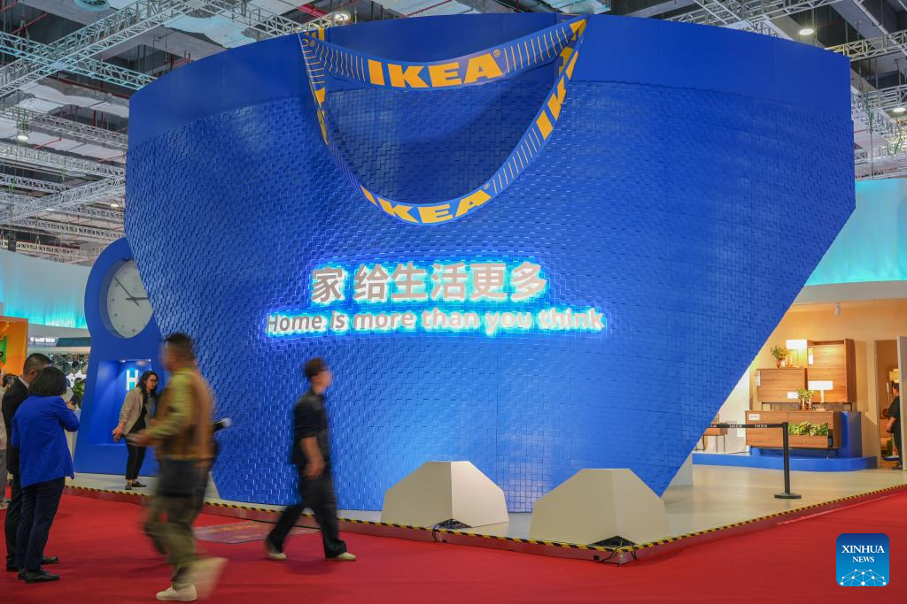 SHANGHAI, 5 noviembre, 2025 (Xinhua) -- Personas caminan junto al estand de IKEA en el área de exposición de Bienes de Consumo de la VIII Exposición Internacional de Importaciones de China (CIIE, por sus siglas en inglés), en Shanghai, en el este de China, el 5 de noviembre de 2025. Con la mayor área de exhibición en su historia y un número récord de expositores, la VIII CIIE, bajo el tema "Nueva Era, Futuro Compartido", ha atraído a 4.108 expositores extranjeros de 155 países, regiones y organizaciones internacionales, con una superficie total de exhibición que supera los 430.000 metros cuadrados. (Xinhua/Zhang Ziyu)