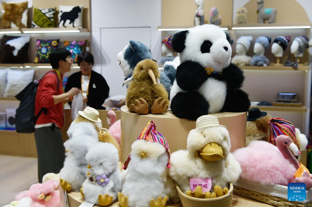 SHANGHAI, 5 noviembre, 2025 (Xinhua) -- Un visitante selecciona juguetes de peluche en el área de exposición de Bienes de Consumo de la VIII Exposición Internacional de Importaciones de China (CIIE, por sus siglas en inglés), en Shanghai, en el este de China, el 5 de noviembre de 2025. Con la mayor área de exhibición en su historia y un número récord de expositores, la VIII CIIE, bajo el tema "Nueva Era, Futuro Compartido", ha atraído a 4.108 expositores extranjeros de 155 países, regiones y organizaciones internacionales, con una superficie total de exhibición que supera los 430.000 metros cuadrados. (Xinhua/Lu Peng)