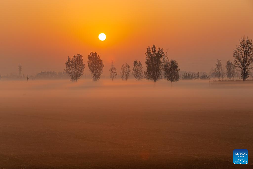 BEIJING, 5 noviembre, 2025 (Xinhua) -- Imagen del 5 de noviembre de 2025 del paisaje junto al río Amarillo, en el distrito de Gaoqing de la ciudad de Zibo, en la provincia de Shandong, en el este de China. (Xinhua/Zhang Weitang)