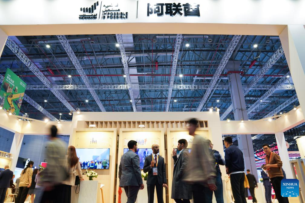 SHANGHAI, 5 noviembre, 2025 (Xinhua) -- Imagen del 5 de noviembre de 2025 del Pabellón de Emiratos Arabes Unidos durante la VIII Exposición Internacional de Importaciones de China (CIIE, por sus siglas en inglés), en Shanghai, en el este de China. La VIII CIIE se inauguró aquí el miércoles. Tailandia, Emiratos Arabes Unidos, Nigeria, Georgia, Suecia y Colombia son los países invitados de honor en la CIIE de este año. (Xinhua/Fan Yuqing)