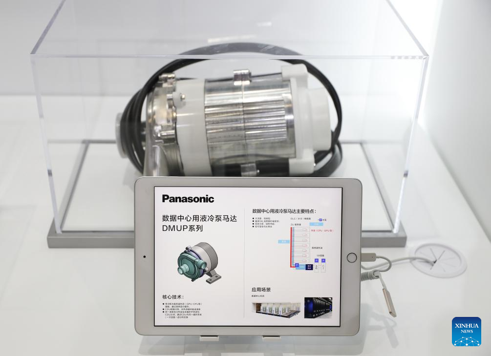 SHANGHAI, 6 noviembre, 2025 (Xinhua) -- El motor de bomba de refrigeración líquida de Panasonic para centros de datos, que hizo su debut en Asia, es exhibido en el área de exposición de Bienes de Consumo durante la VIII Exposición Internacional de Importaciones de China (CIIE, por sus siglas en inglés), en Shanghai, en el este de China, el 6 de noviembre de 2025. Muchos expositores presentaron sus últimos productos en la VIII CIIE de Shanghai. (Xinhua/Wang Jingqiang)