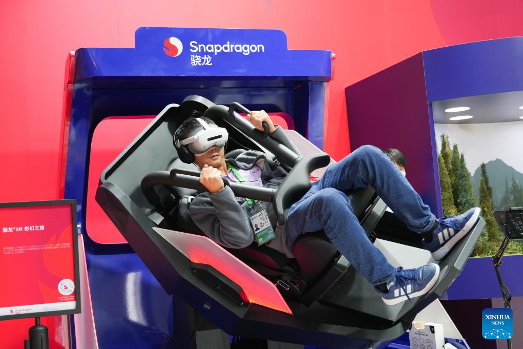 SHANGHAI, 6 noviembre, 2025 (Xinhua) -- Un visitante prueba un dispositivo de Realidad Extendida en el área de exposición de Industria Inteligente y Tecnología de la Información de la VIII Exposición Internacional de Importaciones de China (CIIE, por sus siglas en inglés), en Shanghai, en el este de China, el 6 de noviembre de 2025. La VIII CIIE, que se inauguró en Shanghai el miércoles y durará hasta el 10 de noviembre, muestra equipos avanzados, tecnologías de vanguardia y productos innovadores en campos como la ciencia y tecnología, la industria manufactura y médica. (Xinhua/Zhang Ziyu)