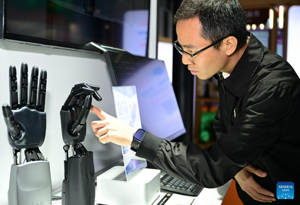 SHANGHAI, 6 noviembre, 2025 (Xinhua) -- Un visitante toca un producto de mano inteligente en el área de exposición de Industria Inteligente y Tecnología de la Información de la VIII Exposición Internacional de Importaciones de China (CIIE, por sus siglas en inglés), en Shanghai, en el este de China, el 6 de noviembre de 2025. La VIII CIIE, que se inauguró en Shanghai el miércoles y durará hasta el 10 de noviembre, muestra equipos avanzados, tecnologías de vanguardia y productos innovadores en campos como la ciencia y tecnología, la industria manufactura y médica. (Xinhua/Cai Xiangxin)